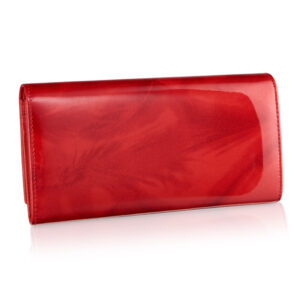 Motyw subtelnych, niezwykle delikatnych piórek, który widoczny jest na całej powierzchni to nie jedyna zaleta portfeli z tej kolekcji. Piękny połysk lakierowanej skóry podkreślają kolory takie jak intensywna czerwień, głęboka czerń oraz romantyczny beżowy.