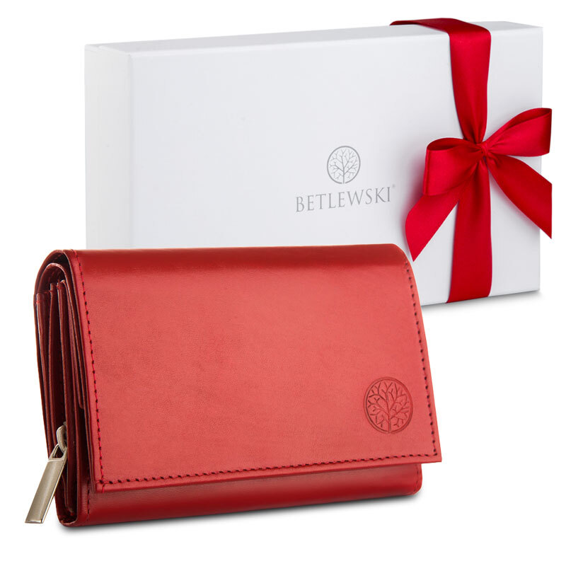 Portfel damski ze skóry naturalnej OLEIC BETLEWSKI®  Szukasz poręcznego portfela damskiego, który jest dobrze zorganizowany, a do tego w idealnym rozmiarze, abyś mogła wrzucić go do torebki lub kieszeni Twojej ulubionej kurtki? Ten skórzany portfel BETLEWSKI® podzielony jest na 3 sekcje ułatwiające organizacje kart, pieniędzy... Czytaj dalej