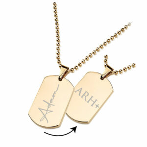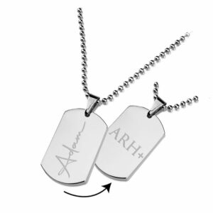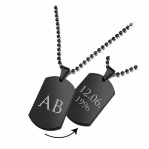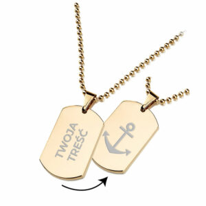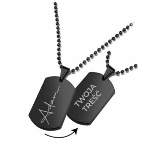 Chcesz otrzymać nieśmiertelnik wygrawerowany z obu stron? Zamów wzór: Grawer obustronny i napisz w komentarzu, jaką treść lub symbol mamy wygrawerować dla Ciebie po obu stronach zawieszki. Kolorystyka grawera na zdjęciach jest wizualizacją i może różnić się nieco od kolorystyki grawera na produkcie.