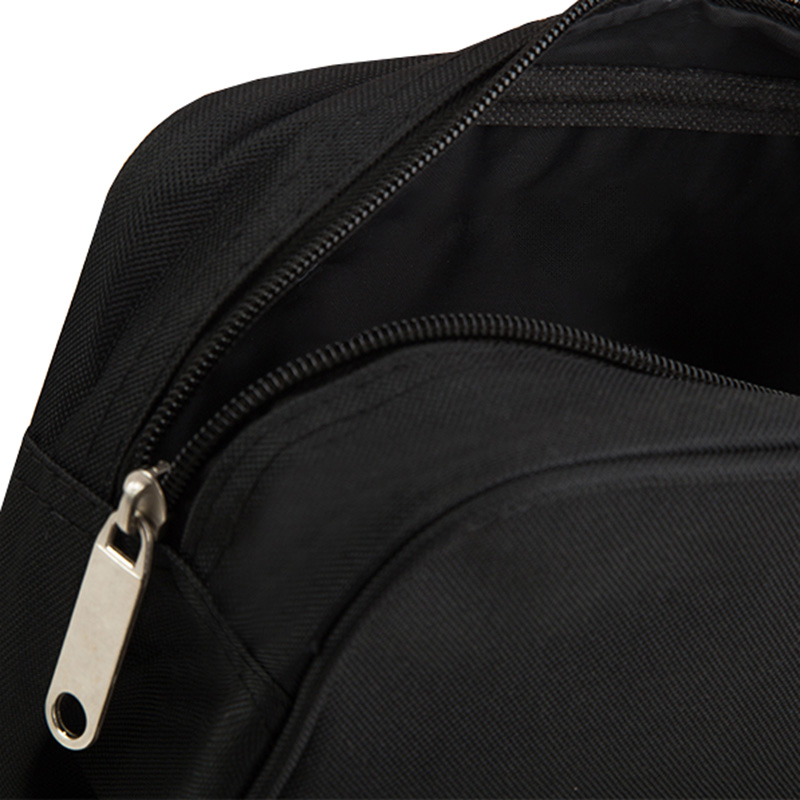Zamek błyskawiczny z metalowymi okuciami w kolorze srebrnym działa płynnie i niezawodnie. Całość jest kompaktowa, ale pojemna – o wymiarach 24 × 16 × 10 cm i wygodnym uchwycie do przenoszenia.