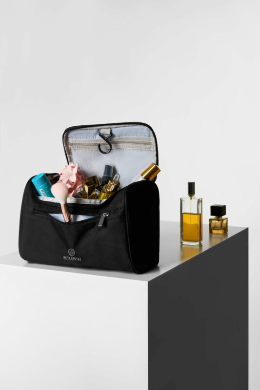 Kosmetyczka podróżna COMPACT BETLEWSKI® to przemyślany dodatek dla tych, którzy lubią mieć wszystkie kosmetyki na miejscu. Jest wyjątkowo pojemna, dobrze rozplanowana i zaprojektowana z myślą o praktycznym podróżowaniu. Jej kompaktowy kształt mieści zaskakująco dużo, a system kieszeni pozwala łatwo uporządkować wszystkie drobne akcesoria.