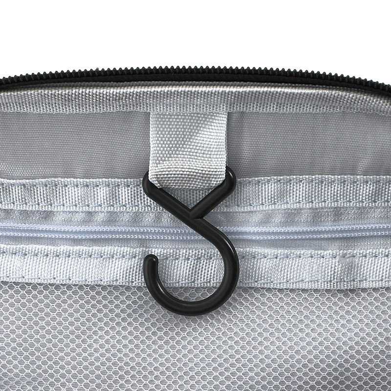 Po otwarciu kosmetyczki znajdziesz praktyczny haczyk, dzięki któremu możesz powiesić ją w łazience. To rozwiązanie szczególnie przydatne w hotelach i małych przestrzeniach, gdzie liczy się każda wolna powierzchnia.
