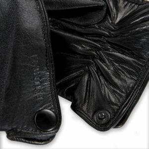Rękawiczki męskie wykonane z z naturalnej skóry owczej. Ocieplone miękką i przyjemną w dotyku podszewką wykonaną z tkaniny poliestrowej. Klasyczny, prosty krój rękawiczek sprawia, że będą pasować do wielu stylizacji. Na zewnętrznej stronie z boku umieszczone zostało małe nacięcie oraz zapięcie na zatrzask ułatwiające wkładanie czarnych rękawiczek.