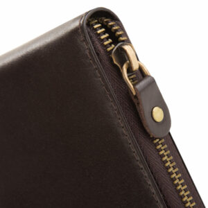 Produkt zapakowany jest w stylowe, sztywne pudełko, idealne na prezent. Logo i okucia w kolorze antycznego złota (złoto szczotkowane) dodają portfelowi wyrafinowanego charakteru, podkreślając jego ekskluzywność. Unikalne, designerskie zapięcie na suwak nie tylko zapewnia doskonałą ochronę zawartości, ale także sprawia, że portfel prezentuje się nowocześnie i elegancko. Dzięki temu portfel nie tylko doskonale spełnia swoje funkcje praktyczne, ale także stanowi modny dodatek do każdej stylizacji.