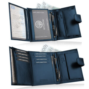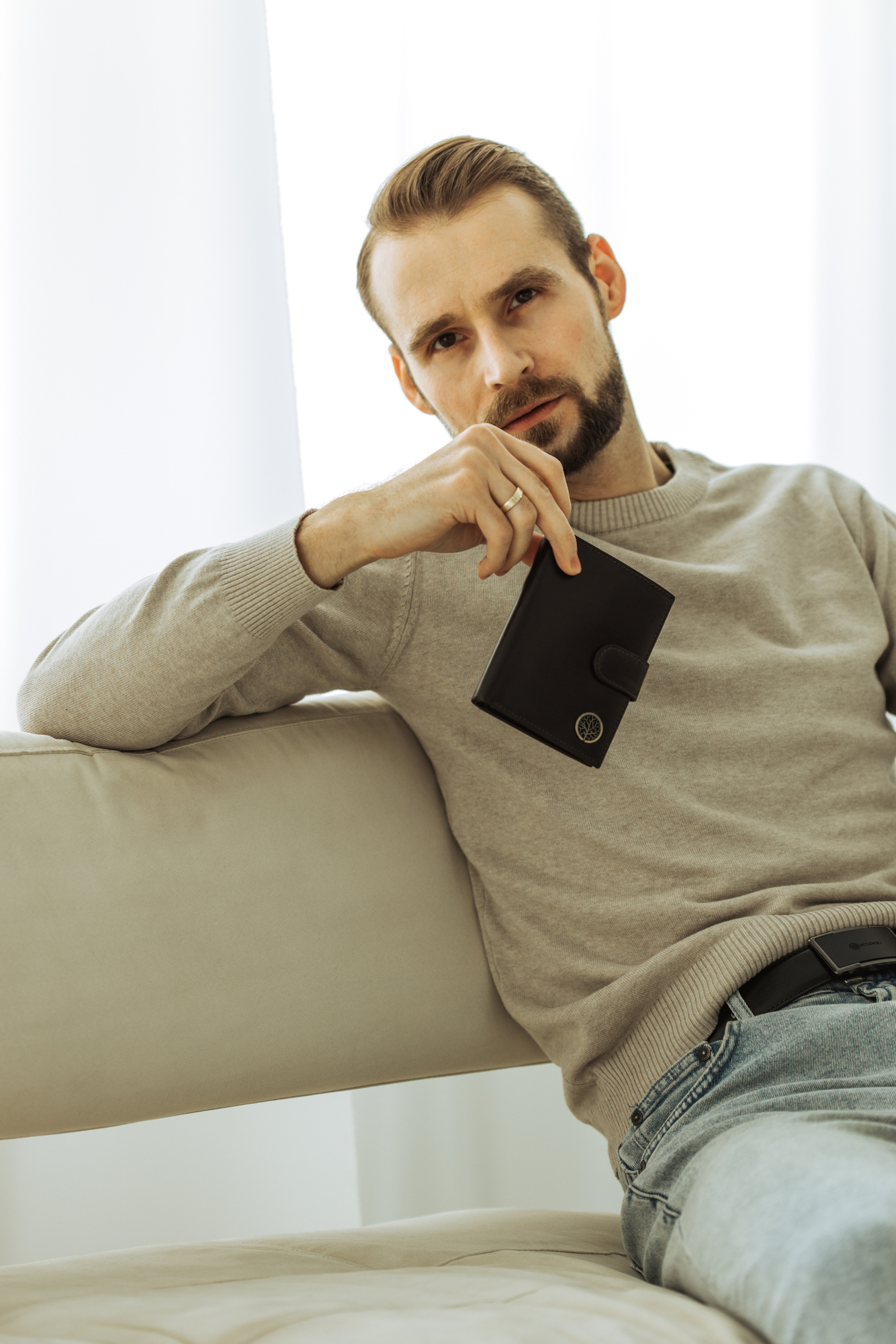 Portfel to dla Ciebie niezbędny dodatek? Dla wielu mężczyzn to nieodłączny element, bez którego nie ruszają się z domu. Wyjątkową funkcjonalność tego portfela męskiego ze skóry determinuję jego wnętrze z dużą liczbą przegródek (łącznie 12 miejsc) i wystarczającą przestrzenią na wszystkie, niezbędne przedmioty. Wyobraź sobie, że odszukiwanie najpotrzebniejszych rzeczy stanie się łatwiejsze, gdy będziesz mieć ze sobą ten rozbudowany portfel, więc nie musisz już więcej męczyć się, przeszukując wszystkie kieszenie! Dzięki bezpiecznemu zapięciu na zatrzask wszystko pozostanie w jednym miejscu. Pamiętaj także, że szanse na utratę rzeczy z dużego portfela męskiego są minimalne, co zdarza się dość często w przypadku losowego noszenia przedmiotów w kieszeniach.