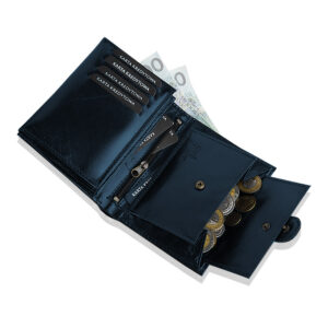 Odpinając zatrzask i rozkładając portfel, w jego wnętrzu znajdziesz: