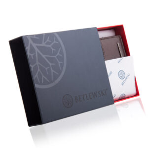 Skórzany portfel owinięty jest w delikatny papier i zapakowany w eleganckie, twarde pudełko z logo marki BETLEWSKI®, dzięki czemu idealnie sprawdzi się jako prezent dla każdego mężczyzny – męża, taty, brata czy przyjaciela.
