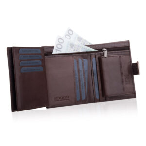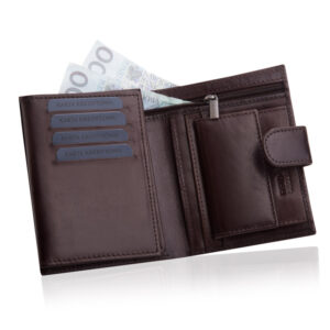 Portfel to dla Ciebie niezbędny dodatek? Dla wielu mężczyzn to nieodłączny element, bez którego nie ruszają się z domu. Wyjątkową funkcjonalność tego portfela męskiego ze skóry determinuję jego wnętrze z dużą liczbą przegródek (łącznie 11 miejsc) i wystarczającą przestrzenią na wszystkie, niezbędne przedmioty. Wyobraź sobie, że odszukiwanie najpotrzebniejszych rzeczy stanie się łatwiejsze, gdy będziesz mieć ze sobą ten rozbudowany portfel, więc nie musisz już więcej męczyć się, przeszukując wszystkie kieszenie! Dzięki bezpiecznemu zapięciu na zatrzask wszystko pozostanie w jednym miejscu. Pamiętaj także, że szanse na utratę rzeczy z dużego portfela męskiego są minimalne, co zdarza się dość często w przypadku losowego noszenia przedmiotów w kieszeniach.