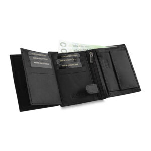 Przemyślane wnętrze to jedna z wielu zalet portfela męskiego GIOVANNI. W środku zmieścisz wszystkie najważniejsze dokumenty, ponieważ został on wyposażony w wiele przegródek i kieszeni. Banknoty, gotówka, karty i dokumenty od teraz będą zawsze w uporządkowanym portfelu męskim GIOVANNI.