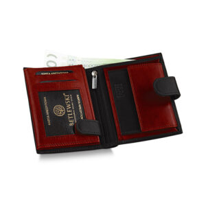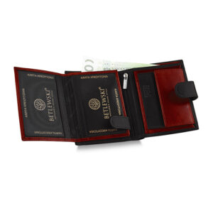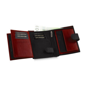 Portfel męski, zaraz po pasku i butach, jest niezbędnym elementem męskiej garderoby. Zwykle mieści w sobie wiele przedmiotów takich jak gotówka czy dokumenty. Warto więc wybrać pojemny i funkcjonalny model, który sprawdzi się w codziennym użytkowaniu. Taki właśnie jest skórzany portfel męski HARRY, który wykonany z wysokiej jakości materiałów. Portfel męski, zaraz po pasku i butach, jest niezbędnym elementem męskiej garderoby. Zwykle mieści w sobie wiele przedmiotów takich jak gotówka czy dokumenty. Warto więc wybrać pojemny i funkcjonalny model, który sprawdzi się w codziennym użytkowaniu. Taki właśnie jest skórzany portfel męski HARRY, który wykonany z wysokiej jakości materiałów. Portfel w orientacji pionowej jest zamykany na zatrzask, a po otwarciu ma widoczne czerwone wstawki materiału oraz przeszycia.