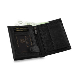 Portfel męski LOUIS został wyposażony w mnóstwo przegródek i kieszeni. Pozwalają one na świetne organizowanie przedmiotów codziennego użytku. Portfel ma miejsce na gotówkę, banknoty i dokumenty. Jego wymiary pozwolą Ci na noszenie go w kieszeni spodni lub kurtki.
