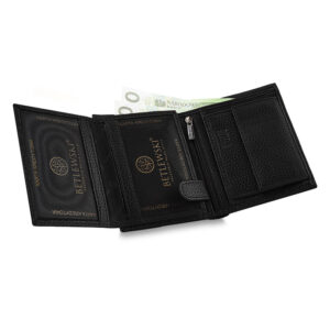 RFID Secure to zintegrowana technologia, która zabezpiecza karty przed nieautoryzowanym odczytem danych. W portfelu, pod wierzchnią warstwą skóry umieszczona jest specjalna membrana blokująca skanowanie kart przez elektronicznych złodziei. Taka ochrona zdecydowanie zmniejsza ryzyko, że Twoje pieniądze i inne ważne dokumenty zostaną skradzione. Dzięki RFID Secure możesz czuć się bezpieczniej. Sygnał emitowany przez specjalne czytniki wykorzystywane do kradzieży zostanie zablokowany. Tym samym uniemożliwia złodziejowi odczyt danych osobistych lub kradzież pieniędzy.