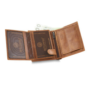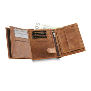 Portfel męski MATTHEW został wyposażony w mnóstwo przegródek i kieszeni. Pozwalają one na świetne organizowanie przedmiotów codziennego użytku. Portfel ma miejsce na gotówkę, banknoty i dokumenty. Jego wymiary pozwolą Ci na noszenie go w kieszeni spodni lub kurtki.