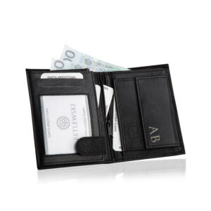 Potrzebujesz skórzanego portfela, który pasuje do tego, co nosisz na co dzień? Jeśli cenisz sobie uniwersalne rozwiązania, to ten czarny skórzany portfel męski BETLEWSKI® jest wprost stworzony dla Ciebie. Wykonany jest w klasyczny sposób, ze szlachetnej skóry koziej z subtelnie wytłoczonym na froncie logo marki.