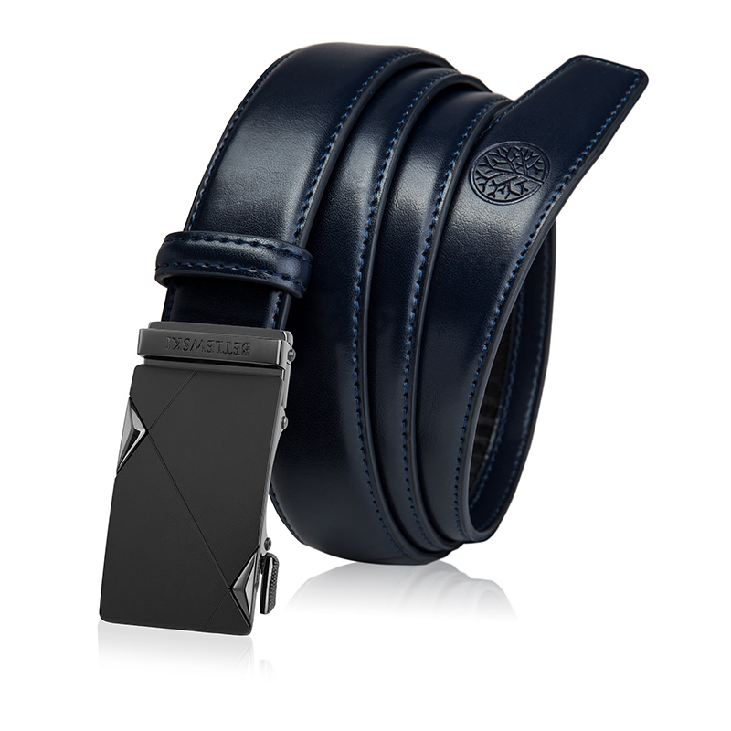 Granatowy skórzany pasek męski ELITE BETLEWSKI® z geometryczną klamrą