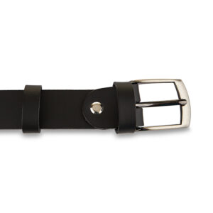 Pasek wykonany jest ze skóry bydlęcej – dwoiny, która zapewnia mu elastyczność i wygodę użytkowania. Matowe wykończenie czarnego paska sprawi, że będzie pasował do wielu okazji – możesz nosić go na co dzień do ulubionej pary jeansów, ale także do bardziej oficjalnych stylizacji.