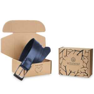 Granatowy pasek ze skóry naturalnej STANDARD BETLEWSKI® wykonany jest wytrzymałej, pełnowartościowej bydlęcej skóry licowej, która determinuje jego trwałość i wysoką jakość wykończenia. Pasek daje efekt lekko połyskującej skóry, który nadaje mu niezwykłego, ponadczasowego charakteru!