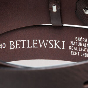 Pasek w odcieniu ciemnego brązu świetnie skomponuje się z Twoją ulubioną parą jeansów, dodając im wyrafinowanego stylu. Jest to dodatek, który łączy klasykę z nowoczesnością, idealnie podkreślając Twoją indywidualność. Na końcu paska znajduje się wytłoczone logo marki BETLEWSKI® w kształcie drzewka. To subtelny detal, który dodaje elegancji i świadczy o oryginalności produktu.