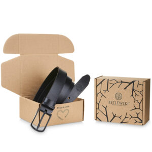 Produkt zapakowany jest w oryginalne, twarde pudełko, które świetnie sprawdzi się, jeśli chcesz podarować komuś skórzany pasek na prezent!