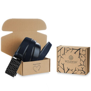 Wyjątkowe opakowanie naszych produktów to u nas standard. Wszystkie paski skórzane z naszej kolekcji pakowane są w twarde, tekturowe pudełka z logo marki BETLEWSKI®, dzięki czemu dostajesz elegancko i estetycznie zapakowany produkt.