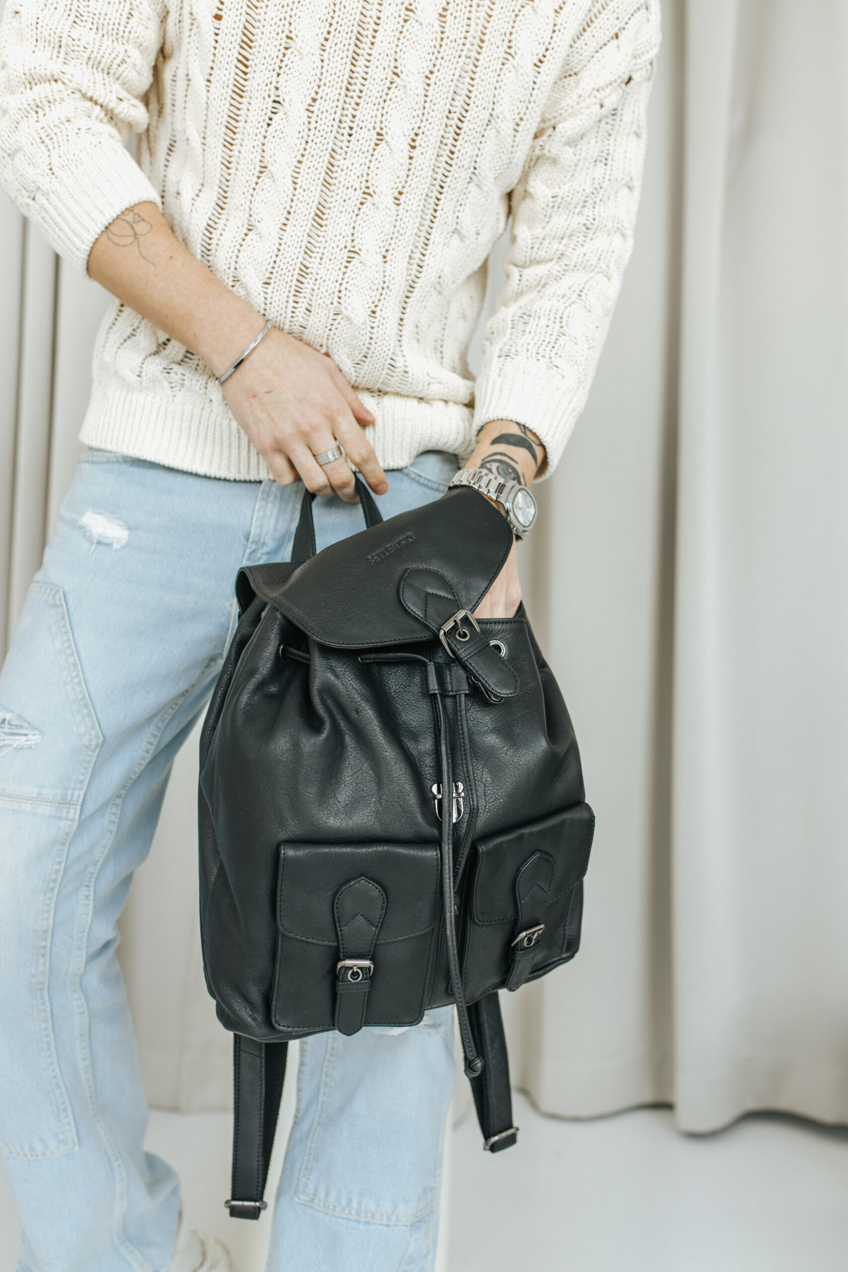 Plecak został zaprojektowany z myślą o komforcie użytkowania przez cały dzień. Wyposażony jest w regulowane, nieodpinane szelki o maksymalnej długości 102 cm, które są podszyte taśmą parcianą, zapewniającą wygodę noszenia i równomierne rozłożenie ciężaru. Skórzane ucho o długości 23 cm, podszyte również taśmą parcianą, ułatwia wygodne przenoszenie plecaka w ręku, a jego pionowa orientacja dodatkowo zwiększa wygodę i ergonomię.