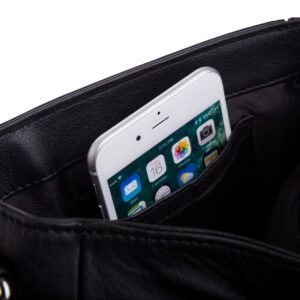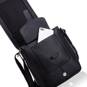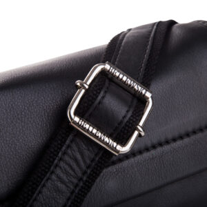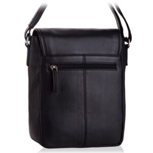 Listonoszka zamykana jest klapą na magnetyczny klips, a zaraz pod nią znajduje się płaska kieszeń na suwak. Jej uniwersalny fason sprawia, że jest idealna zarówno dla mężczyzn, jak i kobiet. Główna komora mieści format A-5, idealna na tablet i inne drobiazgi. Dodatkowo, wnętrze torby jest wyściełane materiałową podszewką o mocnym splocie. W środku znajdziesz kieszeń otwartą na smartfona oraz kieszeń zamykaną na suwak, a z tyłu dodatkową kieszonkę na suwak. Detale, takie jak metki, tłoczenia w skórze i znakowania na metalowych elementach, potwierdzają oryginalność produktu. Długi parciany pas, wzmocniony skórą naturalną, można regulować, a dodatkowy skórzany naramiennik minimalizuje uczucie ciężaru torby.