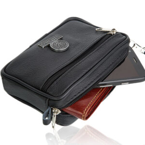 W zestawie z saszetką znajduje się skórzany, odczepiany uchwyt do noszenia w ręce. Można go zamocować z lewej lub prawej strony, co czyni ją wygodną zarówno dla osób leworęcznych, jak i praworęcznych. Z tyłu produktu znajduje się uchwyt do noszenia saszetki przy pasku do spodni, co zapewnia dodatkową funkcjonalność.
