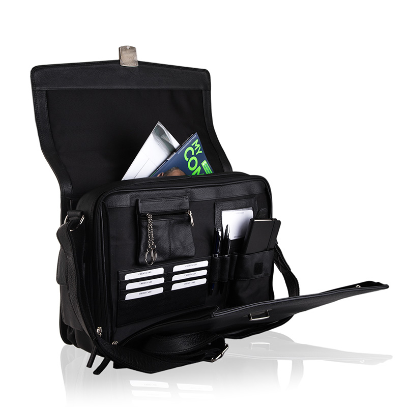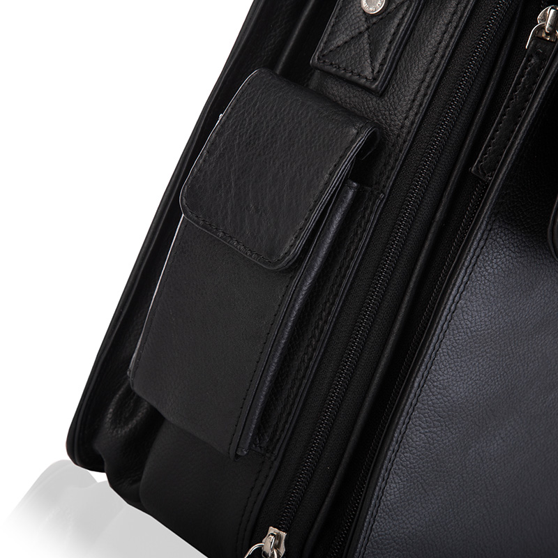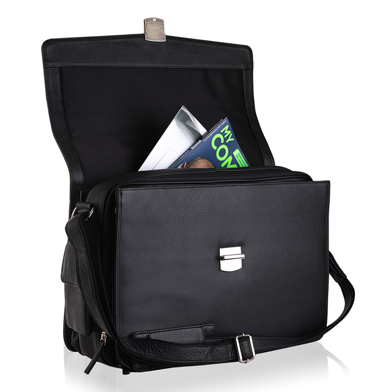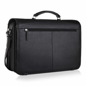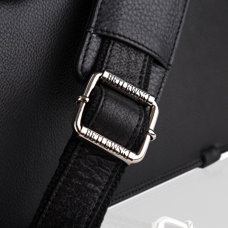 Zamykana na klips i zabezpieczona dodatkowym zamkiem na kluczyk, teczka BETLEWSKI® zapewnia bezpieczeństwo Twoich dokumentów i laptopa. Po odpięciu klipsa dostępne są trzy duże, otwarte komory, idealne na teczki A4. Dodatkowo, wewnętrzna kieszeń na suwak pozwala na przechowywanie drobnych przedmiotów. Rozsuwana przegroda pod klapą skrywa rozległy piórnik, gdzie znajdziesz miejsce na klucze, karty, długopisy, a nawet mały telefon. Centralna część teczki to obszar dla laptopa 15,6″, zabezpieczonego pasami na rzep i wzmocnionymi ściankami. Liczne detale, takie jak kieszonka na suwak, dodatkowe kieszenie wewnętrzne i zewnętrzne, mocny uchwyt do noszenia, oraz dodatkowy pas na ramię z ruchomym naramiennikiem sprawiają, że teczka BETLEWSKI® to solidne i stylowe rozwiązanie dla osób ceniących jakość i dbałość o detale. Dołączony certyfikat autentyczności podkreśla wyjątkowość i oryginalność tej wyjątkowej teczki.