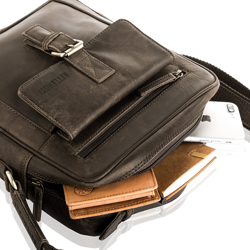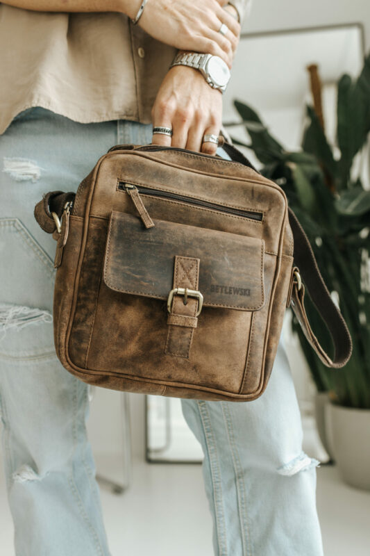 Design torby jest dokładnie przemyślany pod względem funkcjonalności. Dlatego z tyłu listonoszki znajduje się kolejna kieszonka na suwak. Każda przestrzeń jest wykorzystana! Na szczycie torby znajduje się mocny, skórzany uchwyt do noszenia torby w ręce. Na produkcie znajdziemy liczne detale potwierdzające oryginalność produktu takie jak: metki, tłoczenia w skórze oraz znakowania na metalowych elementach. Torba posiada długi parciany pas, wzmocniony skórą naturalną do noszenia jej na ramieniu. Długość paska można regulować i dostosować do swoich potrzeb. Dodatkowo pas posiada ruchomy, skórzany naramiennik. Dzięki niemu uczucie ciężaru torby zostanie zminimalizowane. Do produktu dołączamy certyfikat autentyczności, który potwierdza jakość skóry, z której został wykonany. Dodatek ten podkreśla wyjątkowość i oryginalność produktu.