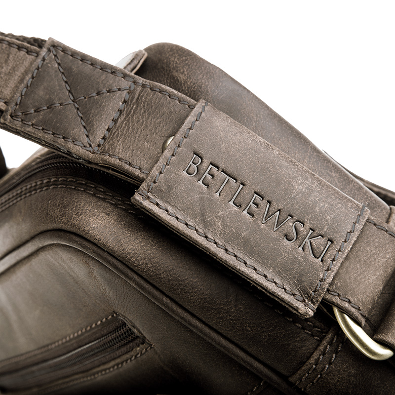 Z przodu torby znajduje się wytłoczone logo marki Betlewski®. Razem z okuciami w kolorze złota torba stylowo się prezentuje. Wybierając ją będziesz właścicielem nie tylko markowego, ale i modnego oraz unikalnego dodatku. Wyróżnij się z tłumu! Torba zamykana jest od góry na mocny suwak. Kieszenie torby wyściełane są materiałową podszewką o mocnym splocie. W głównej komorze znajdziesz: