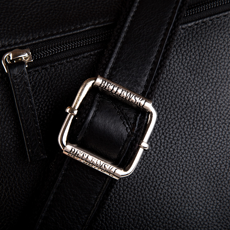 Szczegółowe przegródki na długopisy, karty, dokumenty, otwarta kieszeń na smartfona oraz kieszeń zamykana na zamek to rozwiązania, które pozwalają na utrzymanie porządku w teczce, sprawiając, że każdy przedmiot znajdzie swoje idealne miejsce. Z tyłu teczki znajduje się dodatkowa kieszonka na suwak, idealna na dokumenty, które musisz mieć pod ręką. Długi parciany pas, wzmocniony skórą naturalną, pozwala na wygodne noszenie teczki na ramieniu. Długość paska można swobodnie regulować, a ruchomy, skórzany naramiennik minimalizuje uczucie ciężaru torby, zapewniając komfort noszenia na co dzień. BETLEWSKI® – dla tych, którzy cenią sobie funkcjonalność i styl w każdym detalu.