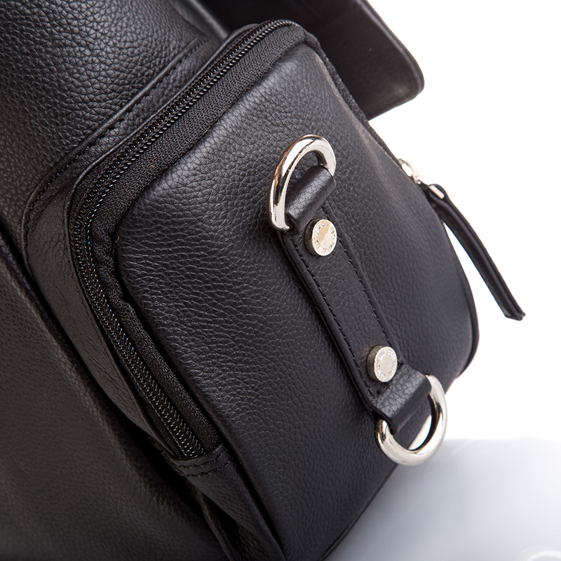Całość torby pełna jest detali potwierdzających oryginalność produktu. Metki, tłoczenia w skórze oraz znakowania na metalowych elementach dodają elegancji i sprawiają, że każdy element jest starannie dopracowany. Klapa, pod którą znajdują się głęboka kieszeń na poziomy suwak oraz spora kieszeń na suwak zamykany pionowo, dodaje funkcjonalności tej wyjątkowej torbie.
