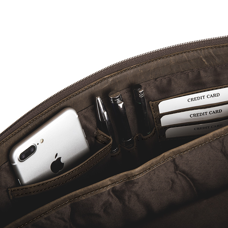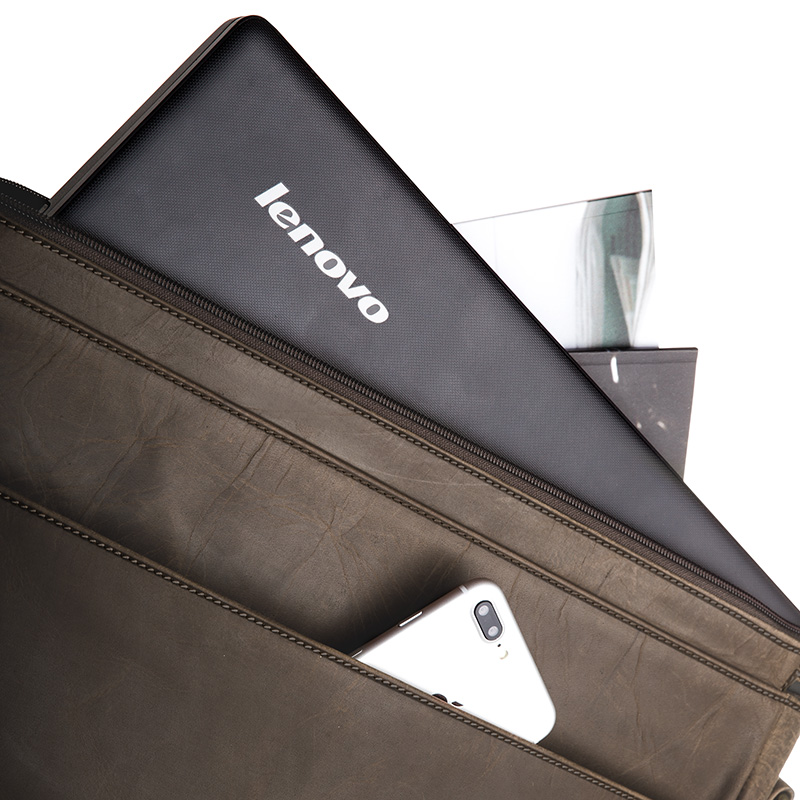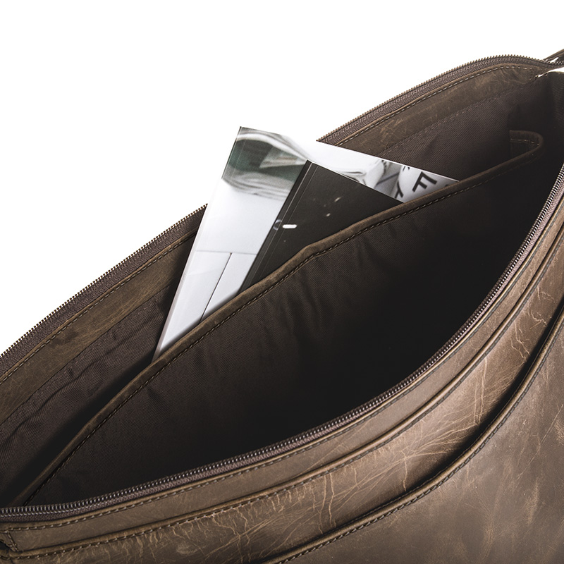 Z tyłu teczki znajduje się kolejna kieszonka na suwak. Idealna na dokumenty, które musisz mieć pod ręką! Torba posiada długi parciany pas, wzmocniony skórą naturalną do noszenia jej na ramieniu. Długość paska można regulować i dostosować do swoich potrzeb. Dodatkowo pas posiada ruchomy, skórzany naramiennik. Dzięki niemu uczucie ciężaru torby zostanie zminimalizowane.