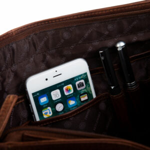 Torba męska została uszyta z naturalnej bydlęcej skóry licowej o charakterystycznym sposobie obróbki skóry stylizowanej na styl vintage (efekt postarzonej skóry). Ekskluzywna, wysokiej jakości skóra znana jest z rustykalnego, naturalnego wyglądu. Jej powierzchnia jest gładka i przyjemna w dotyku. Ten rodzaj skóry pochodzi ze zrównoważonej, ściśle kontrolowanej hodowli, a otrzymywany surowiec to najwyższej jakości materiał. Każdy kawałek skóry ma unikalny charakter, co sprawia, że nie znajdziesz drugiego takiego samego egzemplarza. Do uszycia toreb męskich ze skóry vintage wybierane są tylko najlepsze kawałki skóry, które posiadają znamiona, blizny, przetarcia lub naturalne przebarwienia. Dołączona do torby próbka skóry, pozwoli Ci przekonać się o tym, że skóra jest miękka, elastyczna i przede wszystkim wytrzymała! Torba z takiego rodzaju skóry przy odpowiedniej pielęgnacji posłuży Ci przez wiele lat.