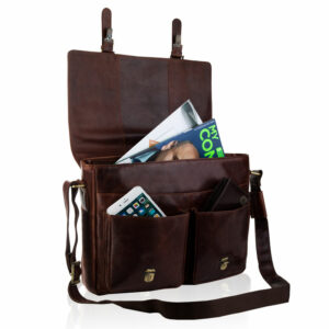 Ta skórzana listonoszka świetnie sprawdzi się jako codzienna torba do pracy, a także na spacery i wyjścia ze znajomymi. Możesz w niej pomieścić wszystkie niezbędne przedmioty. Zawartość skórzanej torby męskiej jest zabezpieczona mocnym suwakiem. Po jej otworzeniu masz dostęp do jednokomorowego wnętrza o wymiarach, które pomieszczą format A4. W środku znajdziesz zasuwaną poziomo kieszonkę wewnątrz głównej komory oraz dwie otwarte kieszenie i rozbudowany piórnik. Na froncie znajdują się 3 kieszenie – jedna duża i otwarta oraz dwie zamykane na zatrzask.