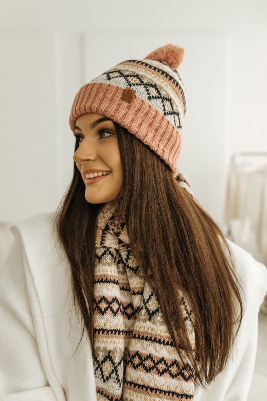 Czapka damska WINTER BETLEWSKI® w skandynawskie wzory, z uroczym pomponem, to idealny wybór na chłodne zimowe dni. Dzięki pełnemu podszyciu z miękkiego polaru zapewnia wyjątkową ochronę przed mrozem, zapewniając jednocześnie przyjemne ciepło i komfort noszenia. Jej obwód, wynoszący max. 44 cm, gwarantuje doskonałe dopasowanie do głowy, co sprawia, że czapka idealnie sprawdzi się nawet podczas najzimniejszych dni.