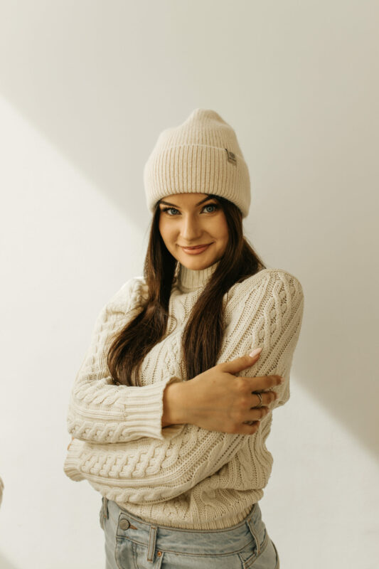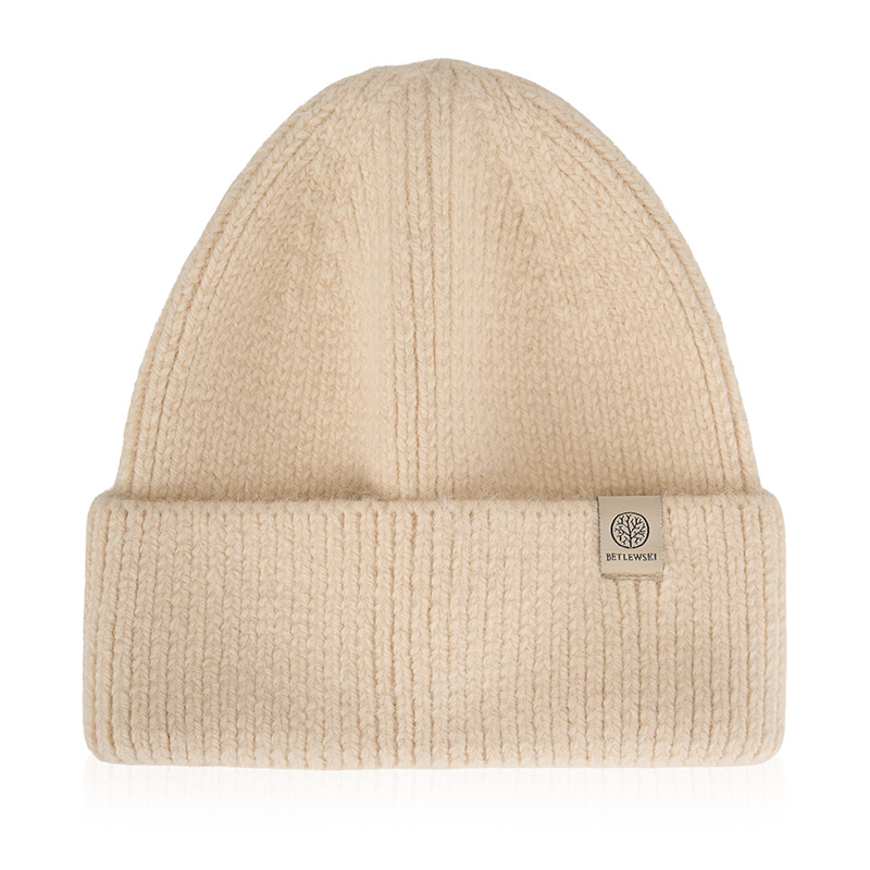 Dodatek angory sprawia, że czapka jest niezwykle miękka, delikatna w dotyku i przyjemna w noszeniu. Wywijany brzeg zapewnia dodatkowe ocieplenie uszu i lepsze dopasowanie, a prążkowana faktura dodaje całości subtelnego charakteru. To praktyczny i stylowy wybór na chłodne, zimowe dni.