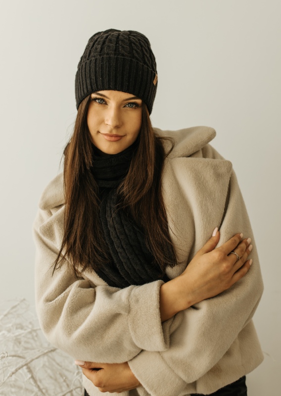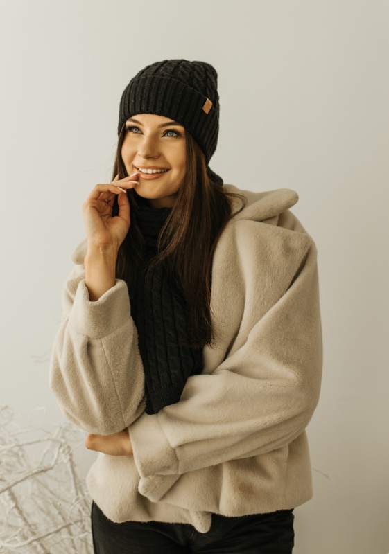 Ta czapka charakteryzuje się eleganckim wzorem drobnych warkoczy, który dodaje jej unikalnego, modowego charakteru. Wzór ten nie tylko wygląda stylowo, ale również dodaje czapce tekstury i głębi, czyniąc ją wyjątkowym dodatkiem do zimowej garderoby.