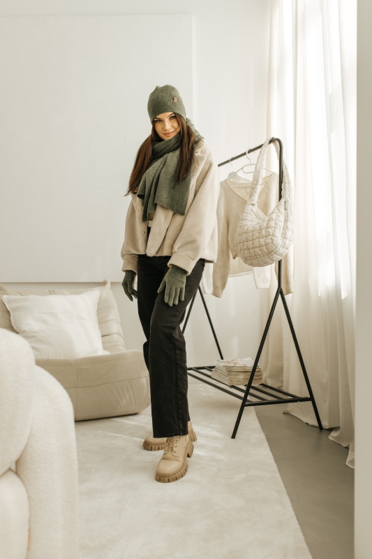 Wywijana czapka damska WINTER pasuje do różnych stylizacji – od casualowych po bardziej eleganckie. Jej prosty, ale elegancki design sprawia, że jest to dodatek, który można łatwo dopasować do każdej garderoby.