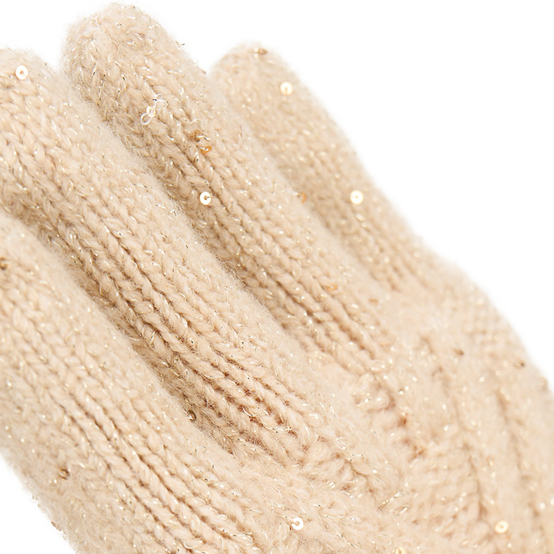 Materiał łączy w sobie trwałość i miękkość, a dodatek naturalnej wełny podnosi komfort termiczny, sprawiając, że rękawiczki przyjemnie grzeją w chłodne dni. Włókno metaliczne nadaje im subtelnego blasku, który pięknie odbija światło i dodaje całości eleganckiego charakteru. To detal, który sprawia, że rękawiczki świetnie sprawdzą się nie tylko na co dzień, ale również w bardziej eleganckich stylizacjach zimowych.