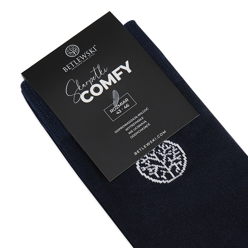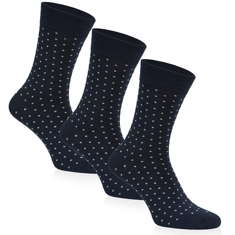 Odkryj komfort i elegancję z zestawem 3 par skarpet w kropki COMFY BETLEWSKI®. Wykonane z przyjemnej dla skóry bawełny z dodatkiem poliamidu i elastanu, są miękkie, wytrzymałe, a przy tym skutecznie przepuszczają powietrze oraz odprowadzają wilgoć. Doskonale nadają się do pracy, a także podczas spotkań, spacerów czy dłuższych wędrówek. Nie uciskają stopy i dopasowują się do niej, zapewniając wygodę przez cały dzień.