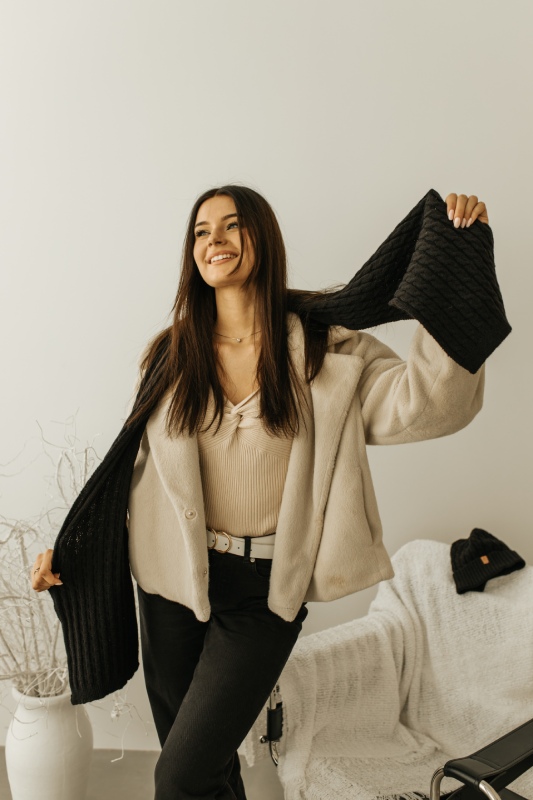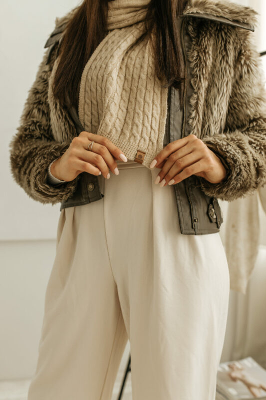 Szalik WINTER charakteryzuje się pięknym wzorem drobnych warkoczy. Ten delikatny, ale efektowny wzór dodaje szalikowi niepowtarzalnego charakteru, czyniąc go idealnym dodatkiem do każdej garderoby. Wzór ten jest nie tylko modny, ale również ponadczasowy, co sprawia, że szalik będzie świetnym wyborem na wiele sezonów.