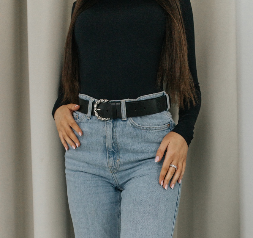 Szeroki, skórzany damski pasek to dodatek, bez którego nie obędzie się żadna kobieta interesująca się modą. W kolekcji EMILY Betlewski® zestawiliśmy szeroki pas wykonany z gładkiej i mocnej skóry licowej z delikatną i kobiecą klamrą w srebrnym kolorze, przypominającą subtelną plecionkę. Skóra użyta do wykonania tego modnego damskiego paska to trwała skóra bydlęca, licowa, o gładkim, zawsze eleganckim wykończeniu. Dzięki niej pasek jest na tyle uniwersalny, że świetnie skomponuje się z każdą stylizacją, podkreślając Twoją wyjątkowość! Na końcu paska znajduje się wytłoczone logo marki – drzewko.