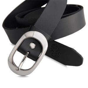 Damski, czarny pasek Betlewski z kolekcji JENNY wykonany jest ze skóry bydlęcej – dwoiny, która jest gwarancją jego trwałości, elastyczności i wygody użytkowania. Matowe wykończenie i klasyczny design tego czarnego paska sprawiają, że doskonale podkreśla on każdą stylizację. Możesz nosić go na co dzień do ulubionej pary jeansów albo dodać go do płaszcza lub żakietu.