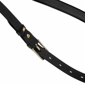 Cienki pasek ze skóry to niezbędny dodatek wielu stylizacji. Estetycznie wykończony z dbałością o każdy detal i zakończony połyskującą klamrą w kolorze złota będzie idealnie podkreślał talie w trakcie noszenia go w zestawieniu z sukienkami, a także będzie pasował do spodni, jeansów czy płaszczy. Ten czarny skórzany pasek damski wykonany jest z niezwykle trwałej, grubej i sztywnej skóry naturalnej, która sprawia, że będziesz używać go przez długi czas! Pasek posiada 7 dziurek umożliwiając regulację obwodu w zakresie 15 cm. Specjalny model klamry umożliwia bardzo proste, samodzielne skrócenie paska w razie gdyby był za długi. Nasze paski pakujemy w firmowe, tekturowe pudełka z logo marki, które idealnie sprawdzą się przy wręczaniu paska jako prezent.
