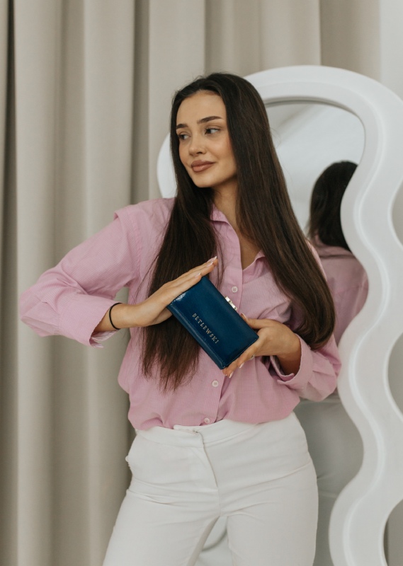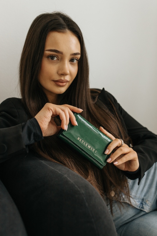 Skórzany portfel damski, który utrzyma porządek w kartach, nie zajmuje prawie miejsca w torebce, a jego konstrukcja zapobiega przepełnianiu go i gromadzeniu nieistotnych przedmiotów? Jeśli brzmi to jak to czego szukasz, to ten model wkrótce stanie się Twoim najlepszym przyjacielem. Mieści więcej kart, niż możesz się spodziewać, a do tego jest wystarczająco kompaktowy, abyś mogła go nosić ze sobą wszędzie. Elastyczność skóry, z której został wykonany pozwoli Ci umieścić kilka kart w każdym wewnętrznym gnieździe, których znajdziesz aż 13! W lakier wtopione są brokatowe drobinki, które pięknie połyskują.