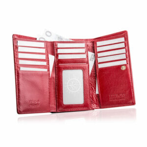 Nasz portfel damski wykonany jest z naturalnej, bydlęcej skóry licowej, która jest jedną z najtrwalszych dostępnych na rynku. Dzięki eleganckiemu wzornictwu, błyszczącej skórze i ekstrawaganckiemu kolorowi czerwieni z pewnością wyróżnisz się w tłumie. Wybierając nasz markowy portfel ze skóry, masz pewność, że kupujesz produkt wysokiej jakości, który będzie Ci dobrze służył przez długi czas.