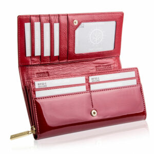 Potrzebujesz dużego portfela, który zaspokoi Twoje wszystkie potrzeby, a do tego jest stylowy i długo Ci posłuży? Wysokiej jakości modny portfel damski BETLEWSKI®, to model, który zaprojektowaliśmy z dbałością o każdy detal. Jego zewnętrzna strona pokryta jest lakierowaną, naturalną skórą licową, która nadaje mu wspaniały, połyskujący efekt. W lakier wtopione są brokatowe drobinki, które pięknie połyskują. Pod względem funkcjonalności i stylu ten model z naszej najnowszej kolekcji nie ma sobie równych. Wykonany z myślą o bezpieczeństwie, wyposażony jest w zaawansowaną technologię RFID Secure, która chroni Twoje karty przed nieautoryzowanym skanowaniem. Jeśli wysoce cenisz sobie funkcjonalność, a jednocześnie wytrzymałość i modny design to wybór właśnie dla Ciebie.