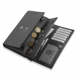 Zapięcie na zatrzask powoli z łatwością otwierać i zamykać portfel, a jego pojemne wnętrze z dużą ilością miejsca na karty zapewni Ci pełną organizację.