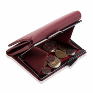 Mniejszy portfel z ochroną RFID nie pozostawia wiele miejsca na zbędne rzeczy. Ma kilka miejsc karty, które są wystarczająco duże, aby pomieścić codzienną kartę płatniczą, dowód osobisty lub ważny rachunek. Dzieli się na przyjemne sekcje zapinane na bigiel lub zatrzask – główna – portmonetka z miejscem na monety i wewnętrzna z miejscem na karty, dokumenty oraz banknoty.